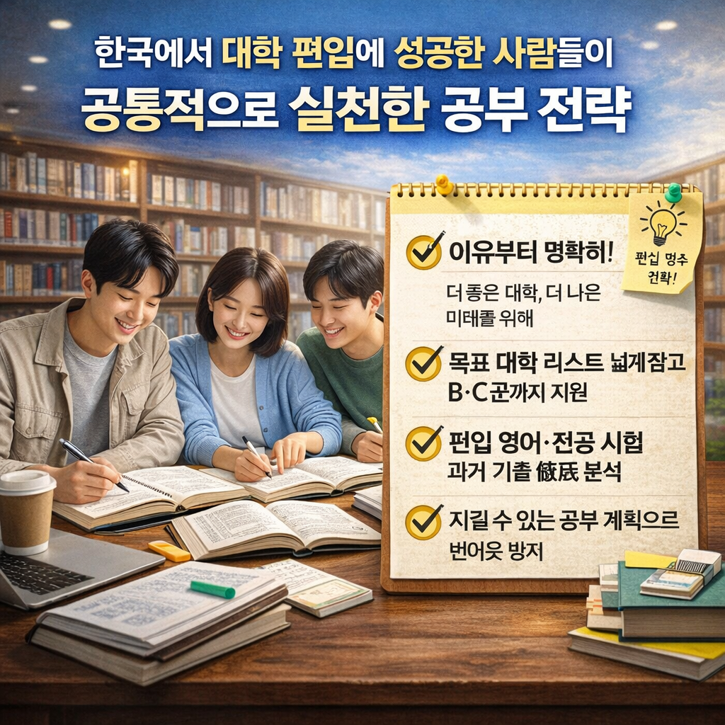 다음 글에서는 편입에 성공한 사람들이 시간 관리와 멘탈을 어떻게 유지했는지 살펴보겠습니다.